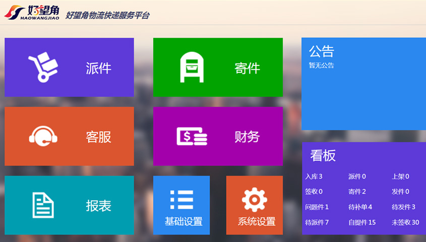 好望角物流快遞服務(wù)平臺(tái)以“最后一公里”為突破口,實(shí)現(xiàn)了快遞從配送中心到客戶手中的全流程服務(wù)。系統(tǒng)通過(guò)對(duì)接上游的快遞公司運(yùn)單進(jìn)行派件和計(jì)件操作,主要用來(lái)幫助該公司正確的統(tǒng)計(jì)派件、寄件數(shù)量,客戶服務(wù), 財(cái)務(wù)結(jié)算,店面管理等。用戶可通過(guò)使用該物流平臺(tái),實(shí)現(xiàn)物流行業(yè)的派件(包括掃碼入庫(kù),自提,收貨確認(rèn)), 派件登記(電子稱重,物流查詢跟蹤)。