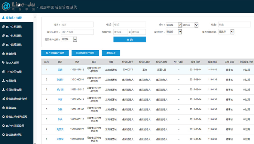 • 報備客戶管理:    管理所有報備客戶的信息,判定客戶的有效性